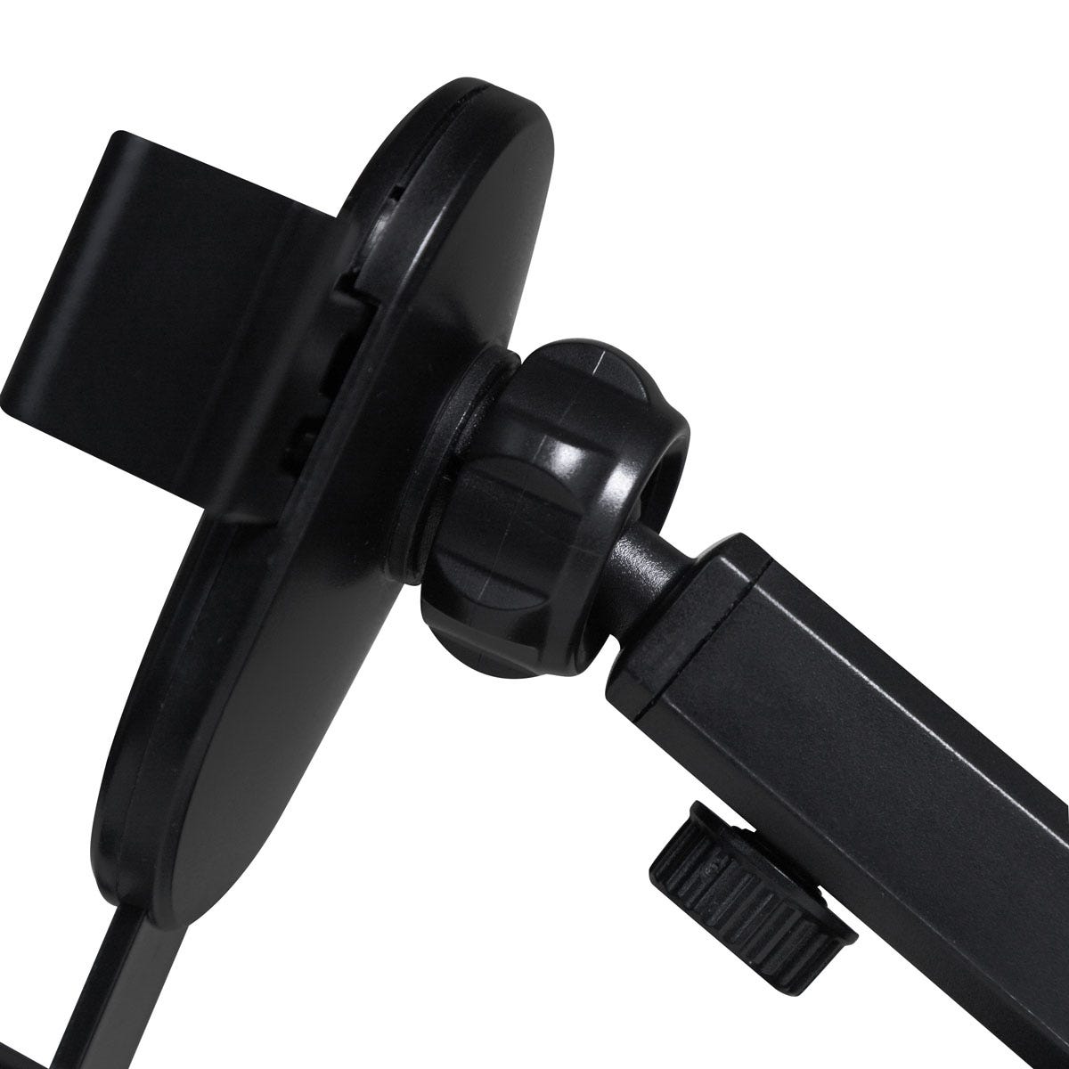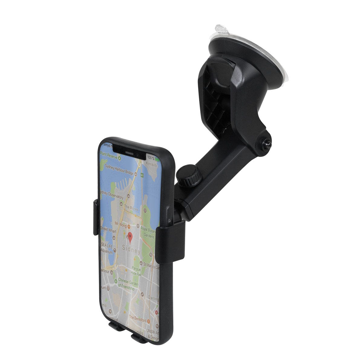 Soporte plegable con ventosa de gel que se adhiere firmemente a tableros y parabrisas. Altura e inclinación ajustable. Incluye caja individual.